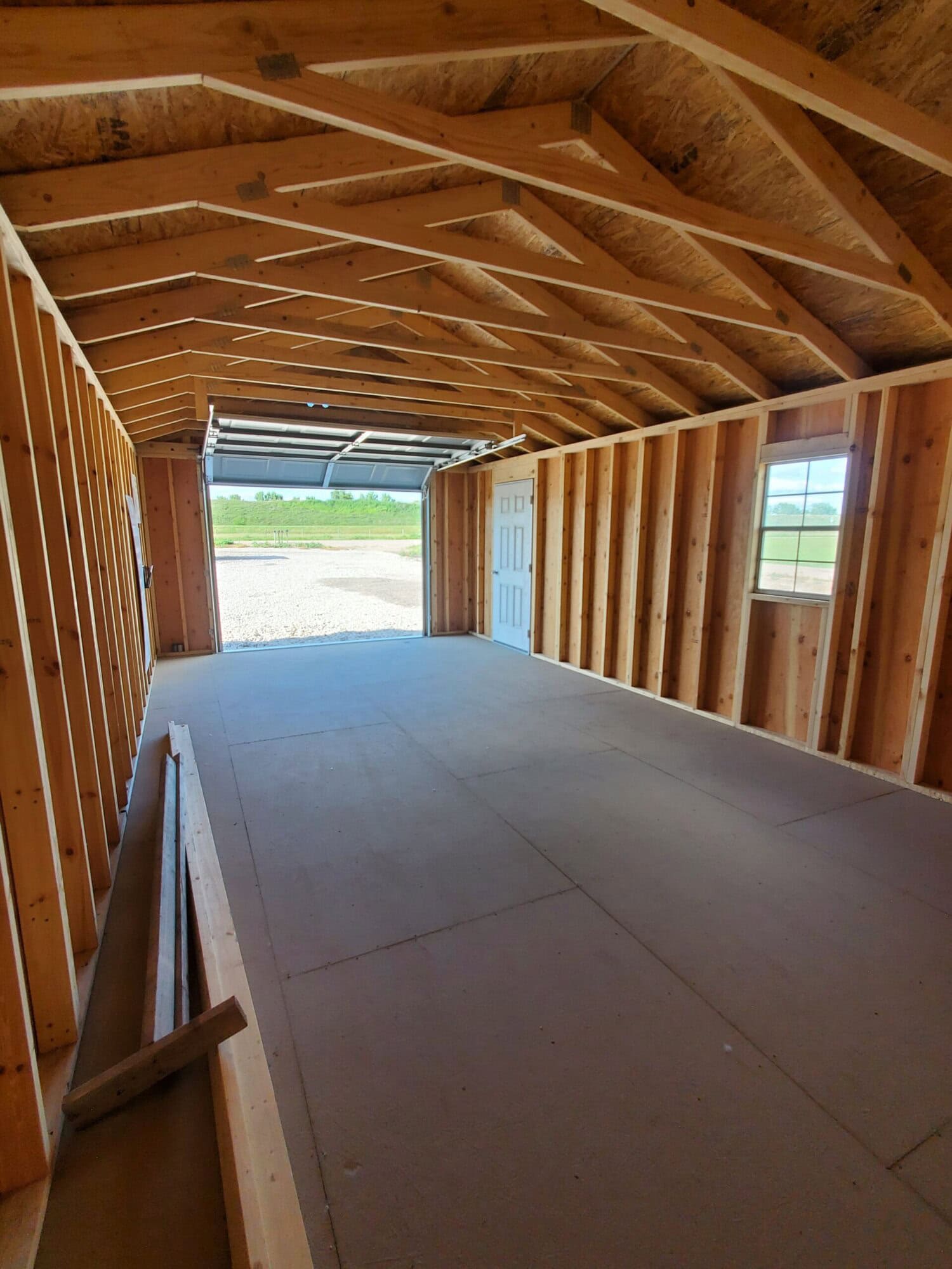 - 12′ wide and wider are complete with a quality paneled 9’x7′ door.